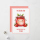 Eres mi mermelada Tarjeta de vacaciones de San Valentín para niños con fresas adorables presenta un adorable tarro de mermelada de fresa sonriente acuarela roja con dulces fresas al frente, todo en un estilo de dibujos animados infantil divertido. El diseño tiene un fondo blanco acentuado por un borde rosa a juego y un dorso rosa. La parte delantera muestra un dulce texto rojo "¡Eres mi mermelada!" junto con deseos personalizados de San Valentín.