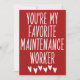 Eres Mi Trabajador de Mantenimiento Favorito Tarjeta Divertida de San Valentín para recordarle a él o ella lo especial que es.