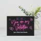 Expresa tu amor en tonos vibrantes con nuestra Tarjeta de San Valentín Neon. Las palabras "Eres mi San Valentín" bailan en una fuente de escritura deslumbrante, adornada en rosa y rojo neón, creando un contraste impactante contra el fondo negro elegante. Corazones neón juguetones están esparcidos alrededor, agregando un toque extra de brillo. Hazlo único personalizando la tarjeta con tu propio mensaje abajo, ya sea un dulce "tu mejor amigo/a" o tus propios sentimientos sinceros.
