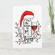 Un diseño navideño divertido y festivo que muestra una botella de vino vacía coronada con un sombrero de Santa, acompañada de un vaso de vino tinto. Ambas están envueltas en luces navideñas centelleantes, con el texto escrito a mano: Es la temporada para emborracharse. Este diseño alegre está disponible en una variedad de productos, perfecto para regalar a los amantes del vino.