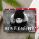 Cuta tarjeta fotográfica de vacaciones con tu foto horizontal con "¡Mejor no tener pique!" en letras blancas escritas a mano. Personalice la parte delantera de la divertida tarjeta fotográfica de vacaciones con su saludo personalizado, nombre de familia y el año. La tarjeta se revierte a un patrón de copos de nieve rojos y blancos. Esta tarjeta de Navidad es perfecta para mostrar fotos de sus hijos haciendo putas, llorando, etc.!
