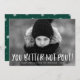 Cuta tarjeta fotográfica de vacaciones con tu foto horizontal con "¡Mejor no tener pique!" en letras blancas escritas a mano. Personalice la parte delantera de la divertida tarjeta fotográfica de vacaciones con su saludo personalizado, nombre de familia y el año. La tarjeta se revierte a un patrón de copos de nieve verde y blanco. Esta tarjeta de Navidad es perfecta para mostrar fotos de sus hijos haciendo putas, llorando, etc.!