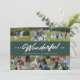 Esta tarjeta de vacaciones verde oscuro presenta un tratamiento único tipo "es una vida maravillosa" junto con un collage de seis fotos y un saludo personalizado. El color de fondo es festivo y de diseño y se coordina bien con una gran variedad de fotos. Esta tarjeta de vacaciones es genial como tarjeta de Navidad familiar, tarjeta de Navidad de una pareja e incluso anuncio de un parto festivo. La parte posterior de la tarjeta está haciendo coincidir el color verde con los adorables puntos blancos y el espacio para un mensaje personalizado y un guión distintivo. Esto también se puede eliminar para una espalda en blanco. Encuentre más colores y estilos en la colección de Lea Delaveris Design. También disponible como descarga de tarjeta de Navidades digitales.