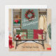 La Tarjeta de Felicitaciones de la Escena Alegre del Vestíbulo de Barro presenta un pintoresco vestíbulo decorado para la temporada navideña. Está completo con suéteres, un sombrero de vaquero, una corona y sorpresas de regalos de Navidad.