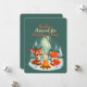 Celebra la temporada con esta reconfortante tarjeta de Navidades con un ciervo, conejo y zorro bebé reunidos alrededor de una fogata asando malvaviscos. El diseño de la fachada se encuentra en un suave fondo verde de bosque, con pinos nevados y un brillante efecto de fuego, creando un ambiente acogedor de bosque. El alegre texto, "¡Reúnete por la alegría de las vacaciones!", está escrito con una acogedora letra manuscrita. El diseño de fondo incluye una pequeña fogata con chispas y el mensaje más sincero: "¡Que tus vacaciones estén llenas de calor y alegría! - [Su Nombre]." Personalizable completo, esta tarjeta es perfecta para difundir alegría festiva y sabores de los bosques.