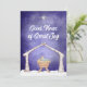 Tarjeta Festiva Escena de Pesebre Rústico con Foto en la Parte Tra