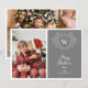 Difunde la alegría navideña con esta elegante y moderna tarjeta de Navidad que presenta un diseño de muérdago con líneas blancas que enmarca un escudo clásico fácilmente personalizable con tus iniciales sobre un fondo gris moderno. Agrega uno de tus retratos familiares favoritos al lado izquierdo de esta tarjeta de vacaciones y una segunda foto en el reverso.