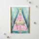 Esta obra de arte festiva presenta un árbol de Navidad abstracto creado con pinceladas inspiradas en la acuarela, mezclando tonos suaves de rosa, dorado y verde en un patrón armonioso. Situado sobre un fondo turquesa luminoso con motas doradas, el árbol está coronado con una estrella brillante y enmarcado con un borde dorado. La elegante composición evoca una sensación de alegría y sofisticación, perfecta para celebrar la temporada navideña.
