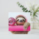 Tarjeta Festiva Espuma divertida con audífonos rosados y bola disc