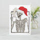 Tarjeta Festiva Esqueleto bebiendo y con sombrero de Santa