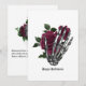 Tarjeta de saludo de boda de Halloween de mano y corazón de esqueleto floral gótico caprichoso de borgoña personalizable a los detalles de su evento.