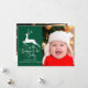 Un reno elegante salta por encima de las palabras de los Navidades Esta temporada es temporada para ser alegre en esta hermosa tarjeta de vacaciones. Clásica elegancia con un ciervo blanco bonito sobre una preciosa caligrafía y una foto familiar llenando la parte delantera de esta tarjeta de saludo verde. Añade otra fotografía al dorso junto con el año.