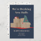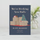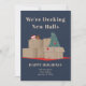 ¡Que tus amigos y familiares sepan que tienes un nuevo hogar para las vacaciones! Estas extravagantes tarjetas de invitación móviles de 5x7 pulgadas, de mano personal, presentan cajas de cartón apiladas con árbol de Navidad, luces, ornamentos, caja de regalo y osito de peluche con el saludo "Decking New Halls", en un fondo azul marino. La parte posterior de las cartas tiene un estilizado color coordinado patrón de puntos aleatorios que da un acento agradable al diseño total. Simplemente personalizar con tu nombre y nueva dirección. ¡Listo!