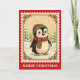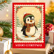 Añade encanto invernal con esta tarjeta postal del pingüino. Diseño nostálgico, en blanco dentro para tu mensaje de vacaciones personalizado.