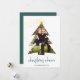 Envíe alegres saludos de vacaciones con estas hermosas tarjetas fotográficas de vacaciones con una imagen vertical u orientada a retratos dentro de un moderno ilustracion de corte de árboles de Navidad cortado con una falsa estrella de Relieve metalizado de oro. "Navidades Cheer" aparece debajo de las letras verdes de abeto festivo, con su apellido y el año por debajo. Añade una foto adicional y un mensaje personal a la parte posterior.
