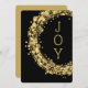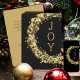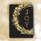 Círculos y estrellas y puntos dorados sobre un fondo negro rodean la palabra "JOY" o su mensaje en el frente y sus nombres y saludos en la parte posterior. CUALQUIER tipo de letra y color de fuente. **AÑADIR una foto en la parte de atrás junto con su saludo personalizado. Seleccione Matte para papel más pesado y alta definición para obtener la mejor calidad de impresión.