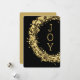 Círculos y estrellas y puntos dorados sobre un fondo negro rodean la palabra "JOY" o su mensaje en el frente y sus nombres y saludos en la parte posterior. CUALQUIER tipo de letra y color de fuente. **AÑADIR una foto en la parte de atrás junto con su saludo personalizado. Seleccione Matte para papel más pesado y alta definición para obtener la mejor calidad de impresión.