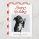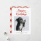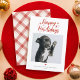 Envíe sus mejores deseos de vacaciones con nuestra tarjeta mascota de Navidades fotográficos. La tarjeta incluye "Happy Howlidays" en un guion rojo vibrante adornado con estrellas y puntos dibujados a mano. Al contrario, la decoración es de diseño, con un toldo de color rojo y beige, que crea un ambiente festivo y acogedor.