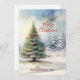 A beautiful evergreen pine tree, decorated with bright red baubles for Christmas, stands out in the snowy wooded landscape. Such a pretty classical sight; it brings a feeling of peace and happiness. Here it is, just for you on this vintage, watercolor flat holiday card that you can enjoy sending to friends and loved ones for the winter holiday season. Merry Christmas!