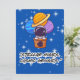 TARJETA FESTIVA EXTALTERRESTRE, UNIVERSO, NAVE ESPACIAL, PLANETA Y