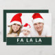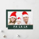 Fa La La Green Modern Navidades Foto Tarjeta De Festividad. Envíe personalizable y saludos personalizados de vacaciones a amigos, colegas y familia en festividades de diseño fotográfico simple, moda, elegante y moderno, tarjetas de estilo minimalista natural! Debajo de la caligrafía se muestra el mensaje de bienvenida de su personalizado en la tipografía moderna.