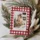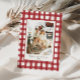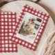 Esta tarjeta de Navidades de temporada cuenta con manto de gingham natural dibujado a mano, colores de vacaciones de inspiración vintage y tipografía orgánica divertida.