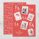 Tarjeta de festividad fotográfica divertida. Nuestro divertido diseño de estampado de franqueo incluye nuestro divertido Santa Claus, la Sra. Clause, y un divertido diseño tipográfico fa la. Añade tus fotos en tres de los diseños de sellos postales junto con tu nombre y año. Diseñado por Moodthology Papery