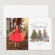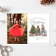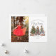 Ilustración de una casa de hada en un tocón de árbol decorada para Navidad con dos árboles, luces de Navidad y linterna. El texto dice, "Deseándote una navidad de hada muy divertida" Personaliza el nombre, año y foto.