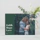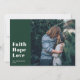 Tarjeta Festiva Faith Hope Love. Foto religiosa de Navidades verde