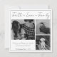 Disfruta deseando a tus amigos y familia una Feliz Navidad con este sencillo diseño clásico, con espacio para tres fotos y las palabras "Familia Fe Amor" escritas en caligrafía moderna en la parte superior. En la parte trasera de la tarjeta se muestra una rama de pino pintada a mano para añadir un toque de buen gusto de la temporada de vacaciones a esta minimalista tarjeta de saludo.