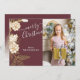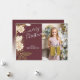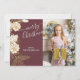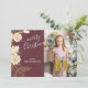 Única tarjeta de felicitación de la temporada navideña adorable y decorativa. Con conos de pino blanco y falso dorado y agujas diseño de arreglos florales sobre un fondo rosa malva oscuro clásico. Con espacio para personalizar o personalización con una foto de su elección, su nombre familiar y texto en el reverso de la tarjeta.