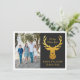 Oh Ciervo Qué Año! Esta elegante tarjeta presenta una cabeza de reno con lámina de oro falsa sobre el sentimiento FELICES FIESTAS. Personalice la tarjeta con una fotografía familiar y su nombre.