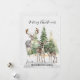 Esta hermosa tarjeta de Navidad pintada presenta árboles en acuarela y una madre y un cervatillo. El papá Buck está detrás de los árboles vigilando a su familia. El fondo es un fondo de nieve arremolinada.