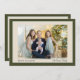 Una tarjeta de vacaciones de foto familiar atemporal que presenta un elegante marco verde oliva con un borde suave marfil y un sutil acento de salvia. La parte delantera muestra su foto horizontal favorita con "Felices Fiestas" y el nombre de su familia en un tipo limpio y legible. La parte trasera incluye espacio para una segunda foto y un breve saludo (totalmente editable), o intercambie el mensaje por una nota más larga. Neutral y no denominacional, este diseño clásico de dos caras es adecuado para Navidad, Janucá o Año Nuevo e imprime hermosamente en existencias mates o brillantes.