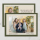 Una tarjeta de vacaciones con foto familiar atemporal que presenta un elegante marco verde oliva con un borde marfil suave y un sutil acento salvia. La parte delantera muestra su foto horizontal favorita con "Felices Fiestas" y el nombre de su familia en un tipo limpio y legible. La parte trasera incluye espacio para una segunda foto y un breve saludo (totalmente editable), o intercambie el mensaje por una nota más larga. Neutral y no denominacional, este diseño clásico de dos caras es adecuado para Navidad, Janucá o Año Nuevo e imprime hermosamente en existencias mates o con brillo.