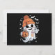 Tarjeta Festiva Fantasma Lindo Bebiendo Café Halloween Café Helado