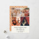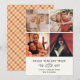 ¡Felices Días de Challah! Esta sencilla tarjeta moderna de Hanukkah tiene una cuadrícula de diseño trendy de Instagram y presenta 4 de tus fotos favoritas junto con un mensaje personalizado de máquina de escribir y una ilustración caprichosa de pan challah y rama botánica. En la parte posterior hay un patrón de gingham rojo naranja cálido.