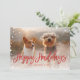 Difunde alegría esta temporada navideña con esta elegante tarjeta de Navidad con tu amigo de cuatro patas favorito que presenta letra a pincel que dice "Felices días de Howlidays" y viene con un patrón de nevada coincidente en la parte trasera.