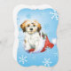 Celebra la temporada festiva con un pequeño y adorable cachorro Havanese sentado en un sombrero de Santa en medio de copos de nieve con las palabras, Felices días festivos en la parte posterior! Ideal para familiares y amigos amantes de Havanese.
