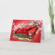 Impresionante ilustracion personalizado de Santa Claus cargando regalos en un Cadillac vintage rojo con un adorno dorado de la capucha de la antler! Gran carta para papá o cualquier fanático de los automóviles.