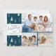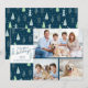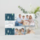 FELICES FIESTAS Tarjeta de vacaciones con 3 fotos con guión de árboles verdes azules. Envía saludos de FELICES FIESTAS con esta tarjeta de vacaciones de 3 fotos que presenta un patrón de árboles de Navidad dibujados a mano modernos y árboles del bosque invernal en azul y verde y tipografía de escritura caligráfica moderna. ASISTENCIA: Contacta al diseñador ANTES DE REALIZAR EL PEDIDO a través de Zazzle Chat o makeitaboutyoustore@gmail.com si deseas que se modifique este diseño, en otro producto o deseas artículos coordinados.