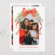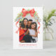 Ropa roja pintada a mano y campanas plateadas foto personalizada y nombre Navidades tarjeta de vacaciones. Personaliza con tu propio nombre y mensaje familiar más cinco fotos propias para que sea tuyo. Tiene arcos rojos y campanas decorativas de color plateado con follaje festivo verde y bayas rojas, todas las acuarelas pintadas a mano directamente de la artista y diseñadora Sarah Trett exclusivamente para www.mylittleeden.com en Zazzle.