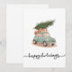 Tarjeta Festiva Felices Fiestas Coche Antiguo Estilo Cute Cartoon