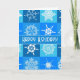 Tarjeta Festiva Felices Fiestas Copos de Nieve Blancos sobre Azul
