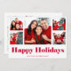 Esta sencilla y elegante tarjeta de Navidad con varias fotos dice "Felices Fiestas" en tipografía roja moderna con una cuadrícula de cinco fotos en la parte frontal de la tarjeta. La parte trasera contiene dos fotos más, además de un espacio para agregar su propio mensaje personal.