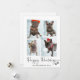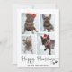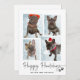 Una tarjeta de vacaciones moderna presenta cuatro de tus fotos favoritas de mascotas personales en una cuadrícula de fotos única y superpuesta. El diseño de la tarjeta en blanco y negro dice "Feliz Howlidays" en tipografía elegante y moderna de escritura a mano, huellas de patas lindas y un espacio para tu nombre en una fuente sans serif coordinada. El texto del reverso se puede editar o eliminar para agregar tu propio mensaje manuscrito personal. Fotos cortesía de @casa_de_frenchies_ en Instagram. © Marisu Valencia