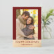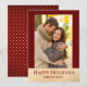 Envía tu amor con estilo con esta tarjeta de vacaciones fotográfica festiva que presenta un borde rojo intenso, acentos de lámina dorada falsa y un saludo moderno con letra serif “Felices Fiestas”. El texto personalizable debajo de la foto te permite agregar tus nombres o un mensaje corto, lo que la convierte en un hermoso recuerdo para amigos y familiares. La parte posterior de la tarjeta presenta un fondo rojo coordinado con lunares dorados para un toque extra festivo. Perfecta para parejas, familias o recién casados que comparten la alegría de las fiestas.