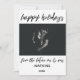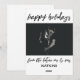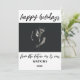 La distinción de este conjunto se debe a la fuente de escritura moderna y manuscrita utilizada para las frases de acento. La fuente de escritura a mano se utilizó para crear un gráfico que representa las palabras "felices fiestas" y "del futuro sr y sra". Utilice los campos de la plantilla para agregar sus datos personales y su foto, y haga que este diseño único y moderno sea suyo. El fondo blanco del reverso se puede cambiar a cualquier color que prefiera. Por favor, comuníquese con nosotros para cualquier solicitud especial o para obtener ayuda para personalizar. // 100 //