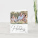 Envía cálidos deseos con estilo con nuestra tarjeta moderna de Felices Fiestas, personalizada con tu foto y nombre en la portada. Esta tarjeta elegante y contemporánea es perfecta para compartir la alegría de las fiestas con amigos y familiares. La parte trasera de la tarjeta presenta un patrón moderno de árboles de Navidad abstractos, delicados copos de nieve, estrellas elegantes y la alegre palabra "ALEGRÍA", lo que añade un toque festivo a tus saludos de fiestas. Ya sea que envíes tarjetas de fiestas a seres queridos cerca o lejos, esta tarjeta personalizada es la forma perfecta de difundir la felicidad y hacer que tu mensaje sea verdaderamente memorable.