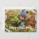 Tarjeta de foto de vacaciones con "Felices Fiestas" escrita en una fuente de pincel caprichosa, dentro de un marco de agujas de pino blancas.